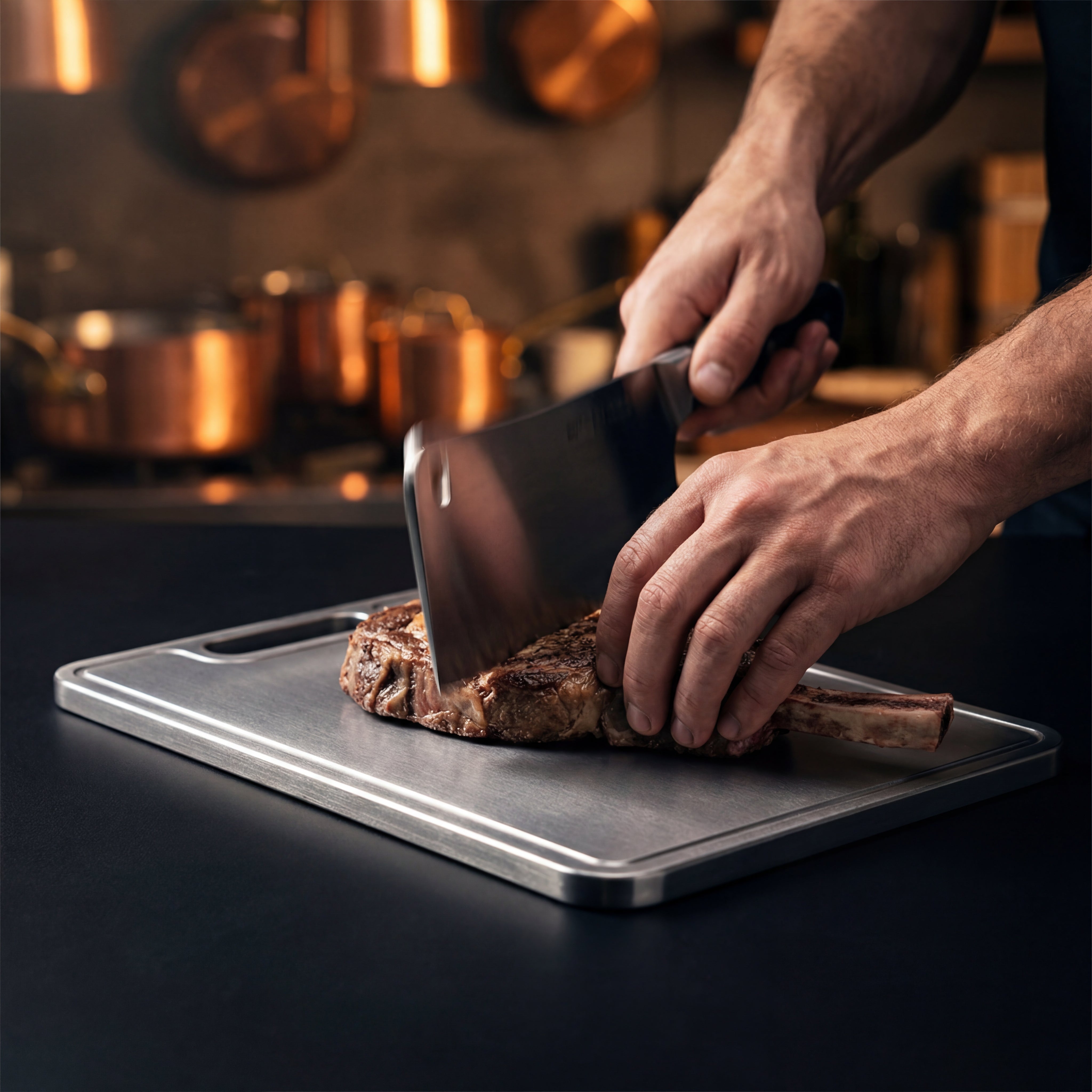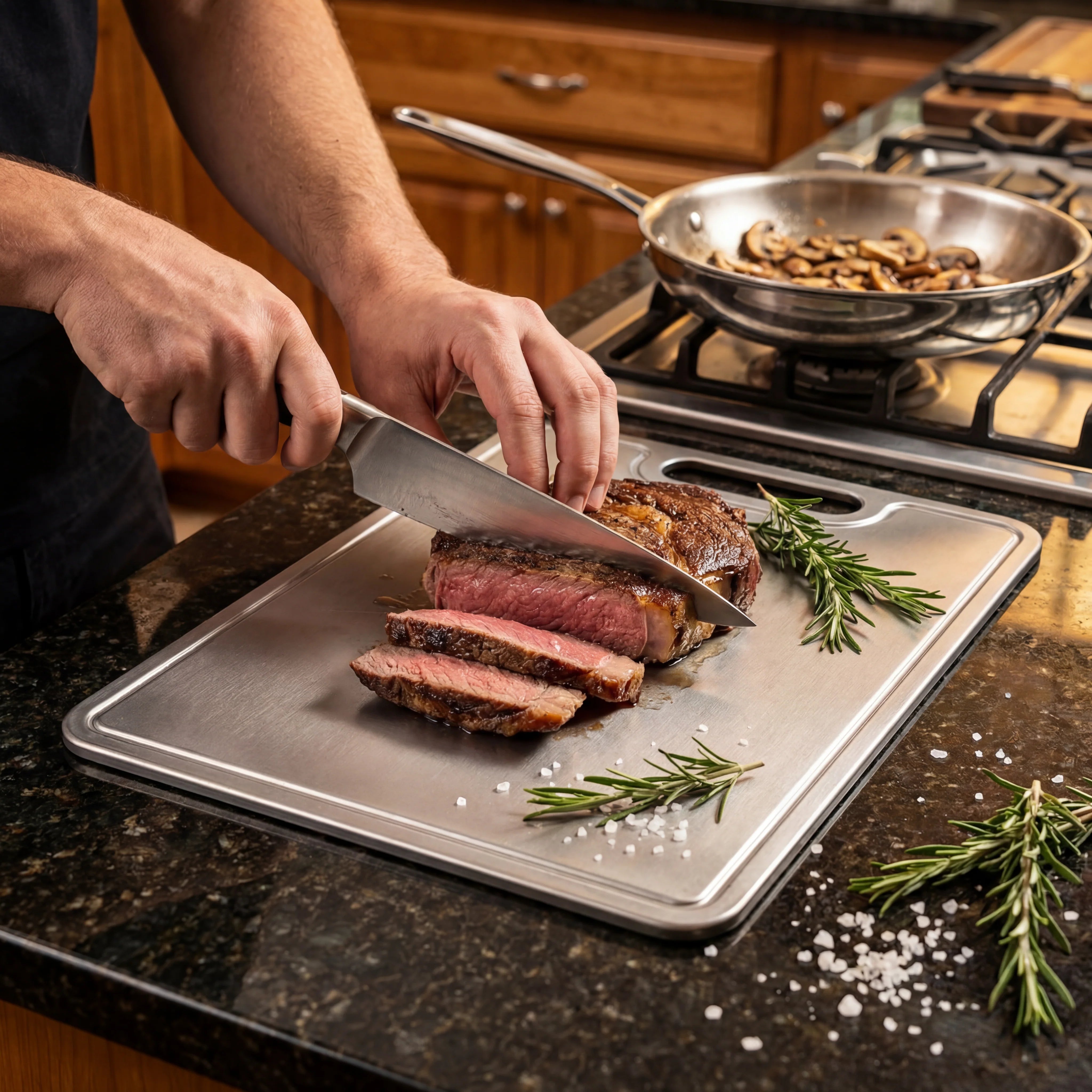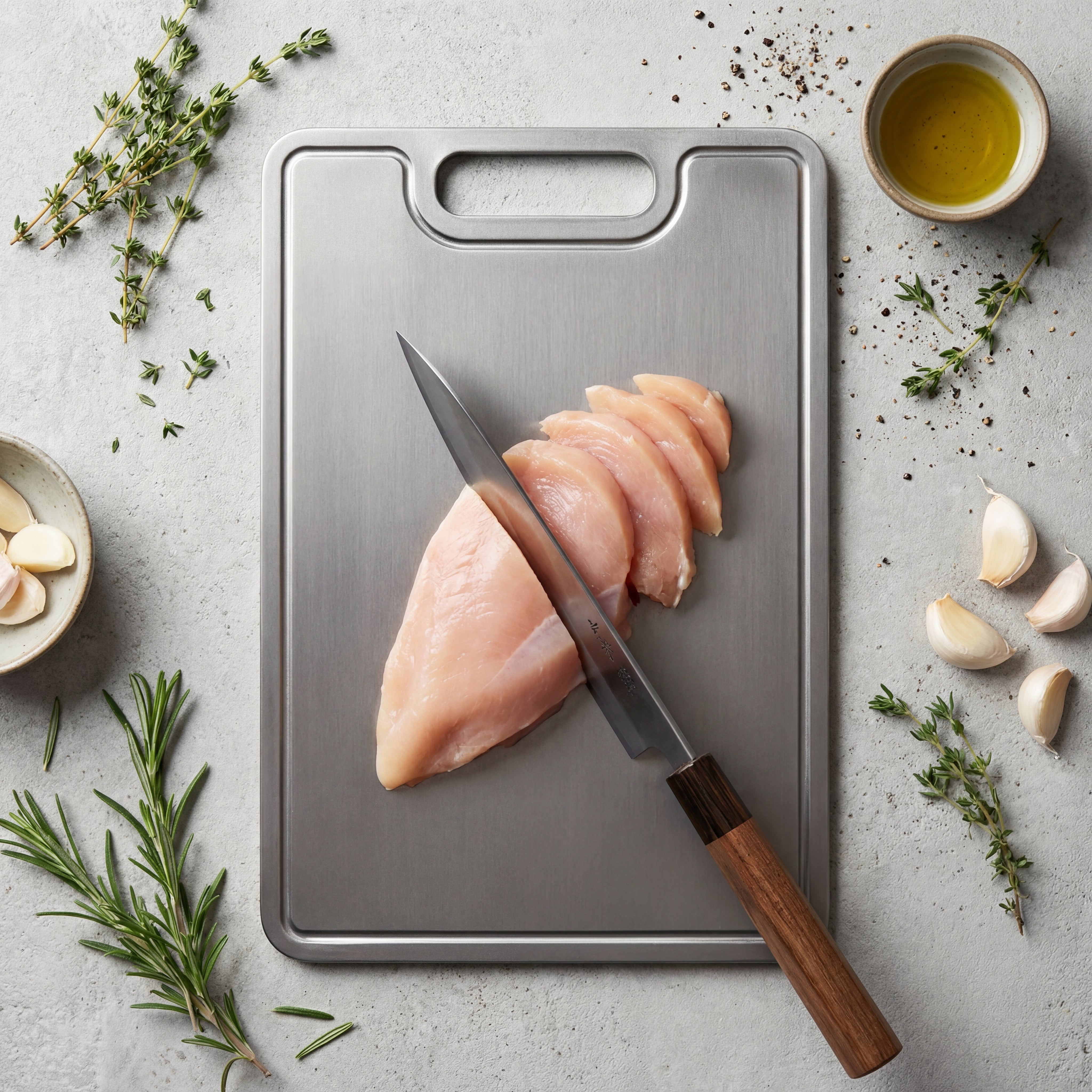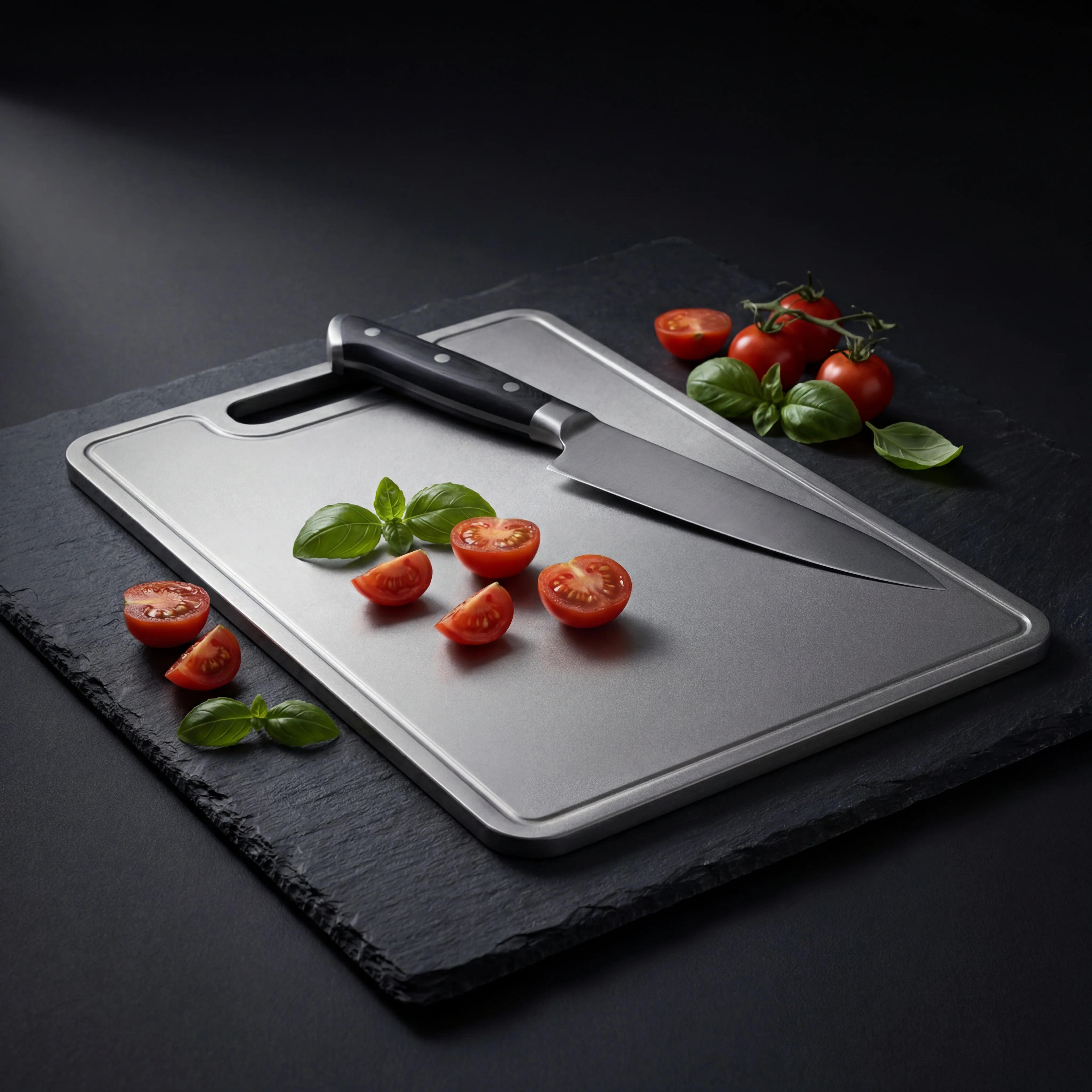 De fleste knive af høj kvalitet har en hårdhed på 55-62 HRC, mens titanium, med omkring 36 HRC, er blødere end stål, men stadig ekstremt holdbart. Denne afbalancerede hårdhed beskytter dine knive mod sløvhed, i modsætning til skærebrætter af glas eller sten, og sikrer, at både blade og mad forbliver i optimal stand.
