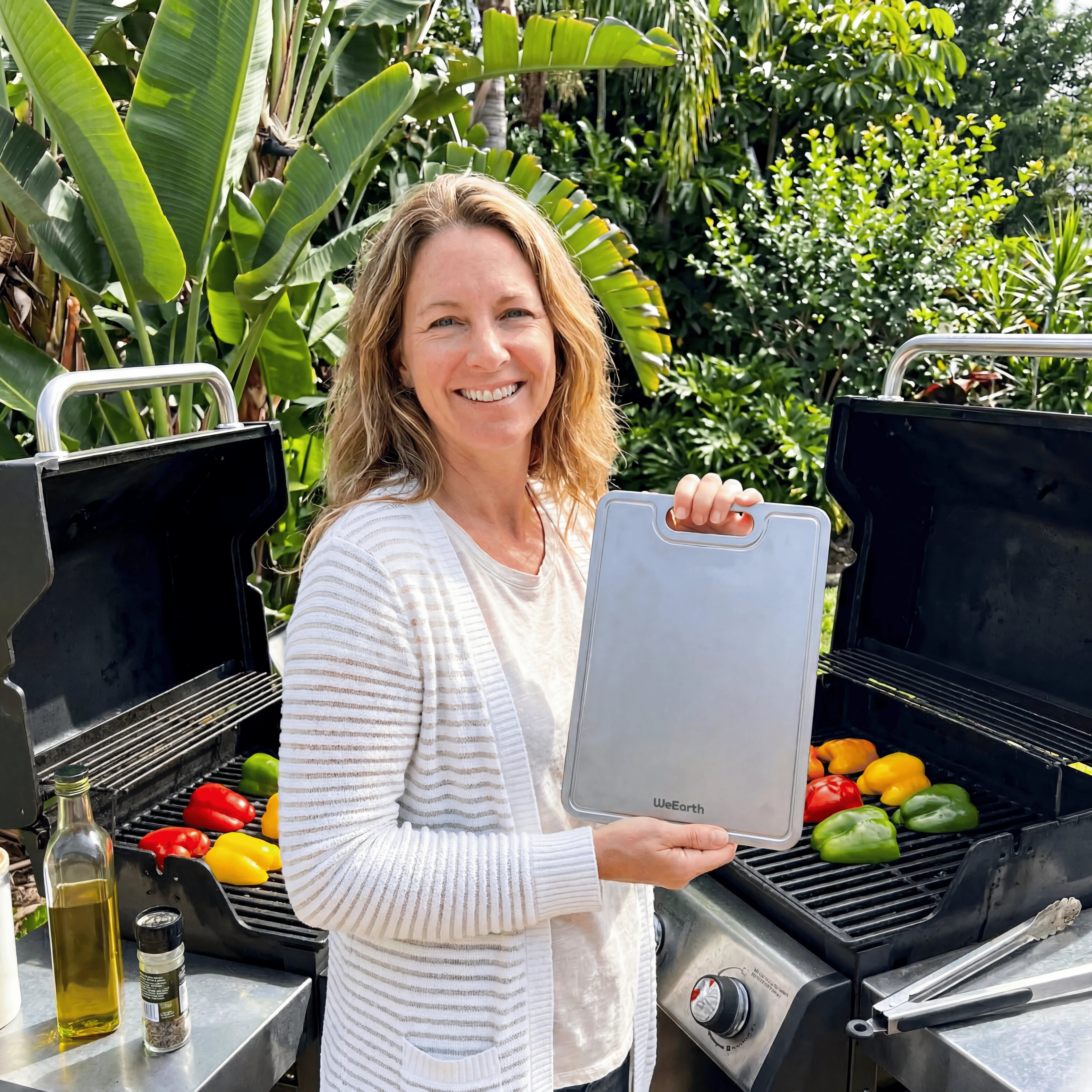 Uanset om du hakker grøntsager, udskærer kød eller tilbereder måltider udendørs – det lette, varmebestandige design af WeEarth køkkenskærebrættet giver den perfekte arbejdsflade.